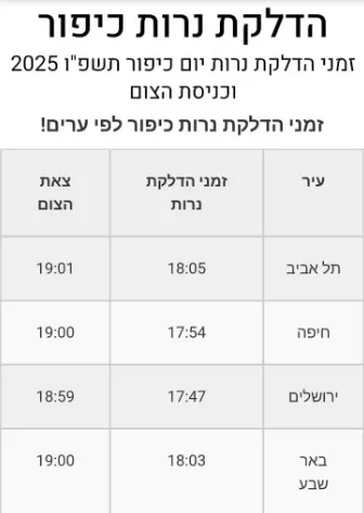 צום יום כיפור מתחיל עם כניסת החג כמה דקות לפני השקיעה של הערב שלפניו. השנה, הצום יתחיל ביום רביעי 1 באוקטובר בסביבות השעה 18:15-18:30 – יש להתעדכן בכל עיר בהתאם לזמני האזור.